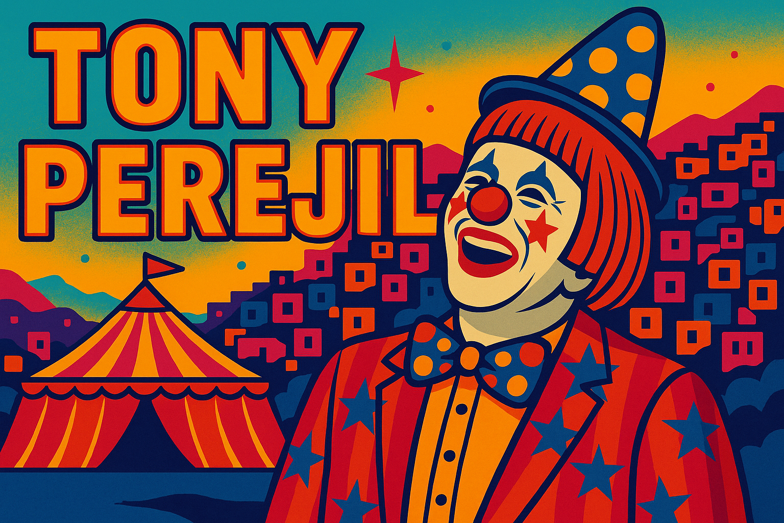 Tony Perejil, cuyo verdadero nombre fue José Álvarez Vélez, nació en Arequipa en 1923 y desde niño sintió el llamado del mundo circense. En su juventud trabajó con el “Capitán Paz”, donde aprendió acrobacia, malabares y comicidad. Más tarde fundó su propio circo familiar, con el que recorrió los barrios populares de Lima llevando alegría por apenas un sol la entrada.